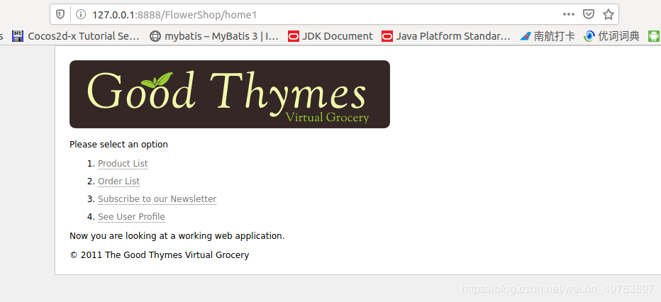 启动完浏览器就可以在浏览器输入:http://localhost:8888/war包名(即上下文路径)/路径进行访问了,如:http://127.0.0.1:8888/FlowerShop/home1