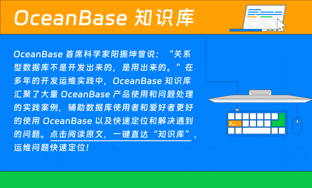同时,也期待大家后台留言“客服”,投稿分享自己的 OceanBase 工作手册,共建共享,让 OceanBase 数据库的运维工作更便捷!