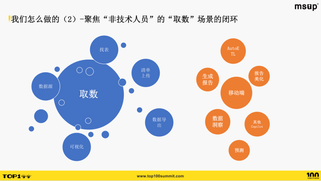 这些专注与坚持获得了用户的认可。以网易云音乐为例,有数ChatBI的上线,使得自助取数的用户从此前的60%增加到了80%,并且依然在增长之中;而取数分析的需求也从每周5000次拓展到了10000次,这意味着更多长尾用户的需求被满足。这同时也解放了数仓团队——他们几乎不再需要响应临时数据分析需求,可以将全部精力投入到数据的基建之中,形成“用户使用-数据建设-资产运营”的数据资产建设的闭环。