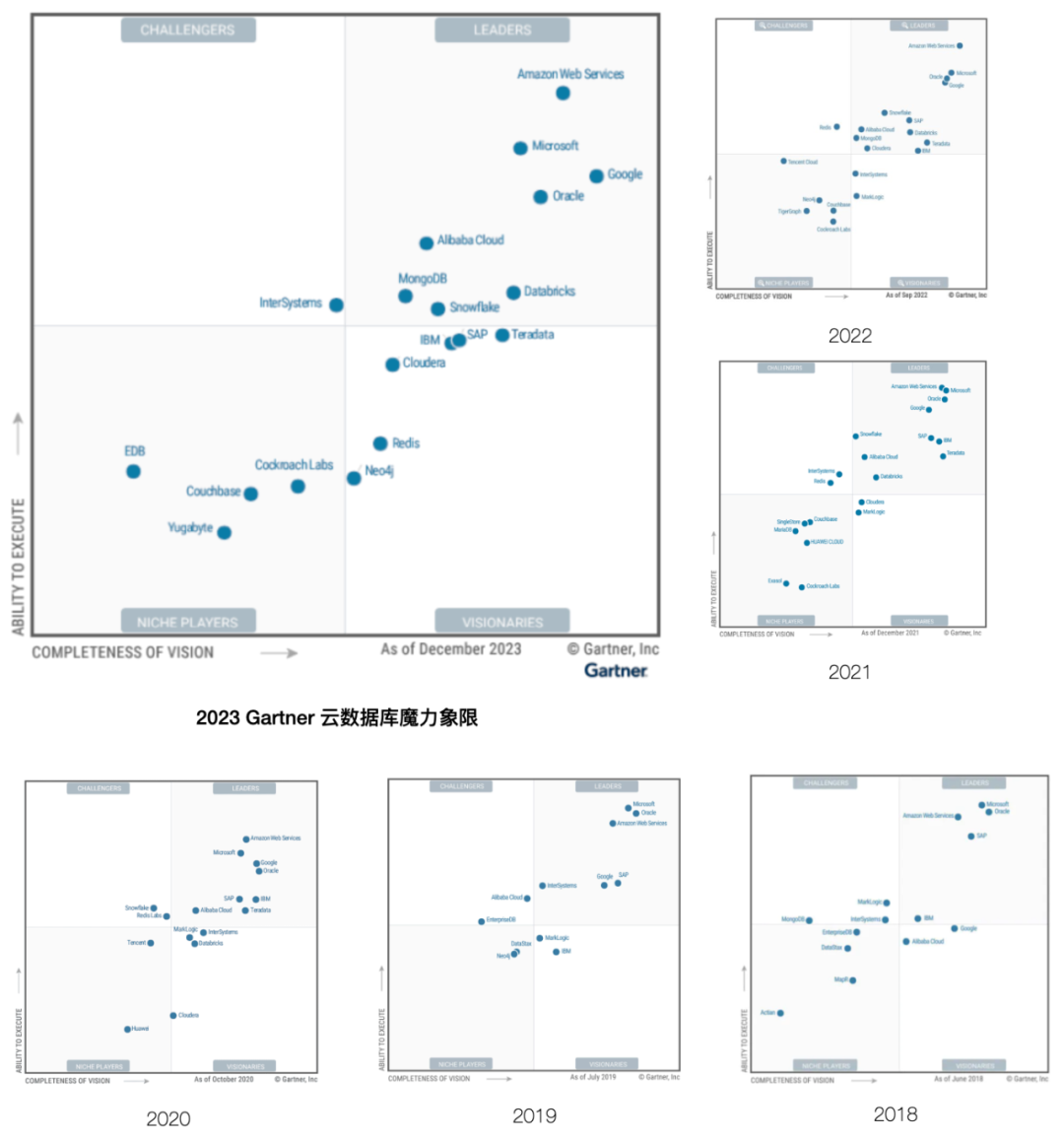 Gartner云数据库魔力象限(后简称“象限”或“MQ”)一直是全球数据库领域的年度”锦标赛”,其目标是帮助企业技术决策者选择更加适合的数据库厂商。也因为Gartner的专业与专注,其榜单在各个领域都被众多的企业技术决策者所认可。所以,数据库领域的MQ也就成为了各大厂商一场年度重要的”考试”。今年的结果,放榜了: