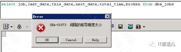 业务反馈查询dba_jobs视图报ORA-01873错误,如下图: