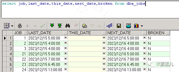 1)查询dba_scheduler_jobs; 2)查询DBA_JOBS视图忽略TOTAL_TIME字段。