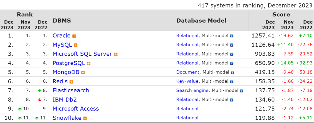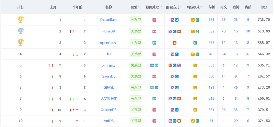 根据全球领先的IT市场研究和咨询公司IDC发布的《2023年上半年中国关系型数据库软件市场跟踪报告》,截止到2023年6月底,中国国产关系型数据库市场份额前5名分别是:
