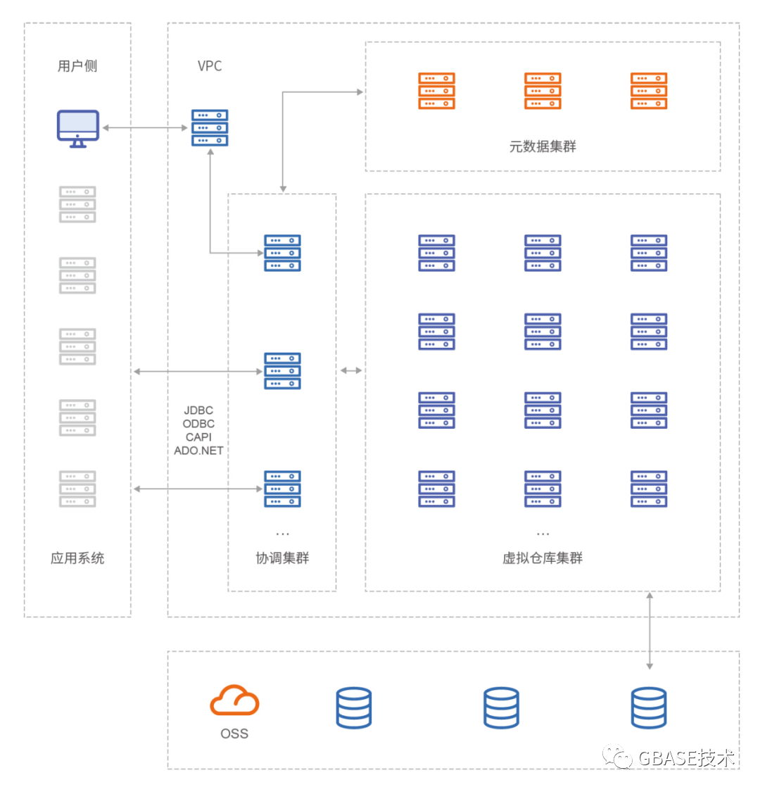 这次入驻阿里云计算巢的是云原生数据仓库系统GBase Cloud Data Warehouse(简称GCDW),是一款基于GBase 8a MPP Cluster的云上数据仓库产品,采用计算和存储分离架构,以SaaS方式向用户提供服务,具有极致弹性、开箱即用、免维护、秒级扩缩容、物理多租等特性,有效降低系统部署复杂度及客户使用成本。简单来说,GCDW=GBase 8a MPP Cluster+云计算。