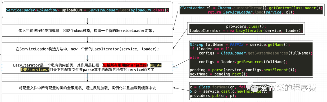 最终,我们终于看到了providers.put(cn, p)这一步,它将实现类名和实现的类放入了缓存。至此,JAVA SPI的所有源码我们看完了。比起大多数源码来说,相对简单。