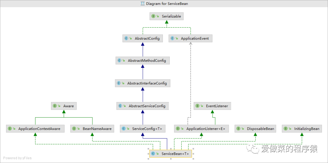 先找到dubbo-config-spring下的ServiceBean,这里包含6个主要的方法,这些方法来自于它实现的接口,我们这里提一嘴这些接口。