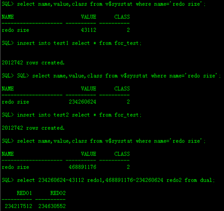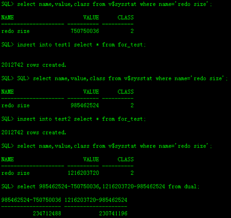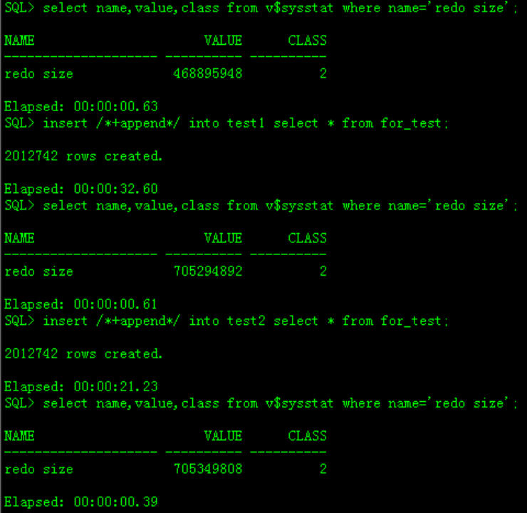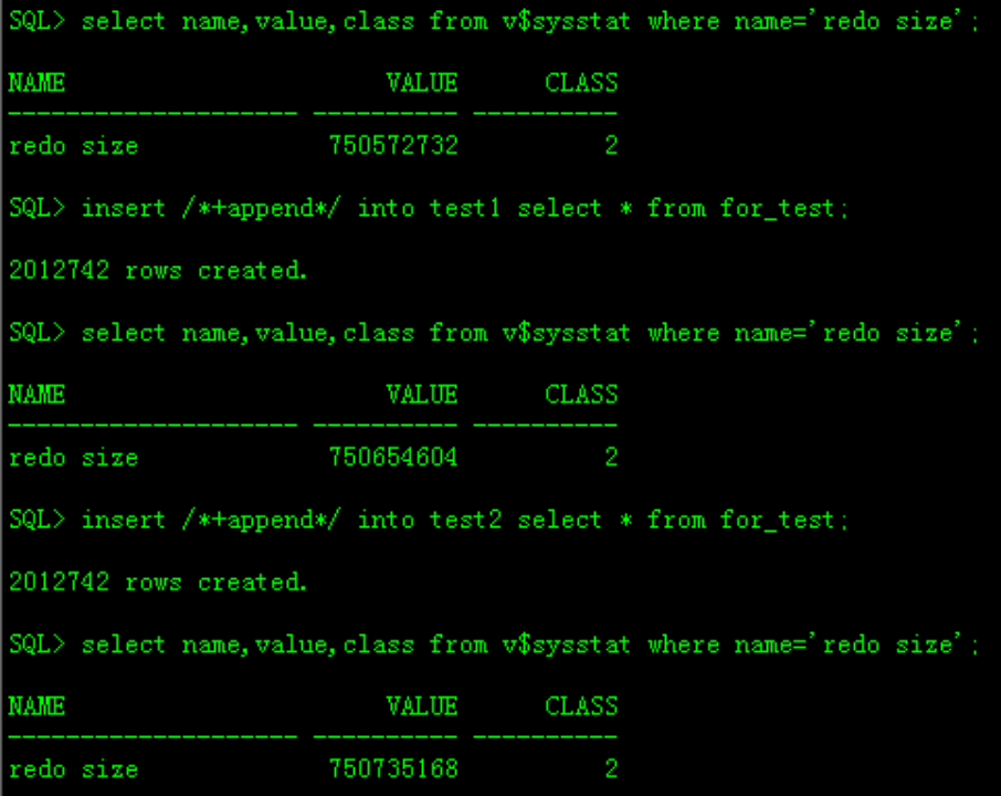 情况1:在非归档模式下,使用append就会大量减少redo的生产