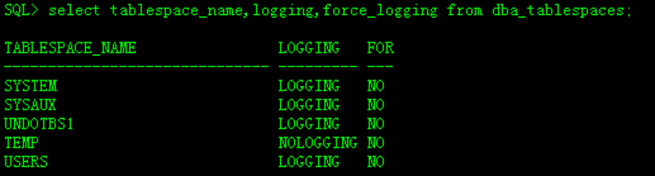 这是日志记录的缺省模式,临时表空间不会记录日志到联机重做日志文件,TEMP表空间默认也是NOLOGGING。