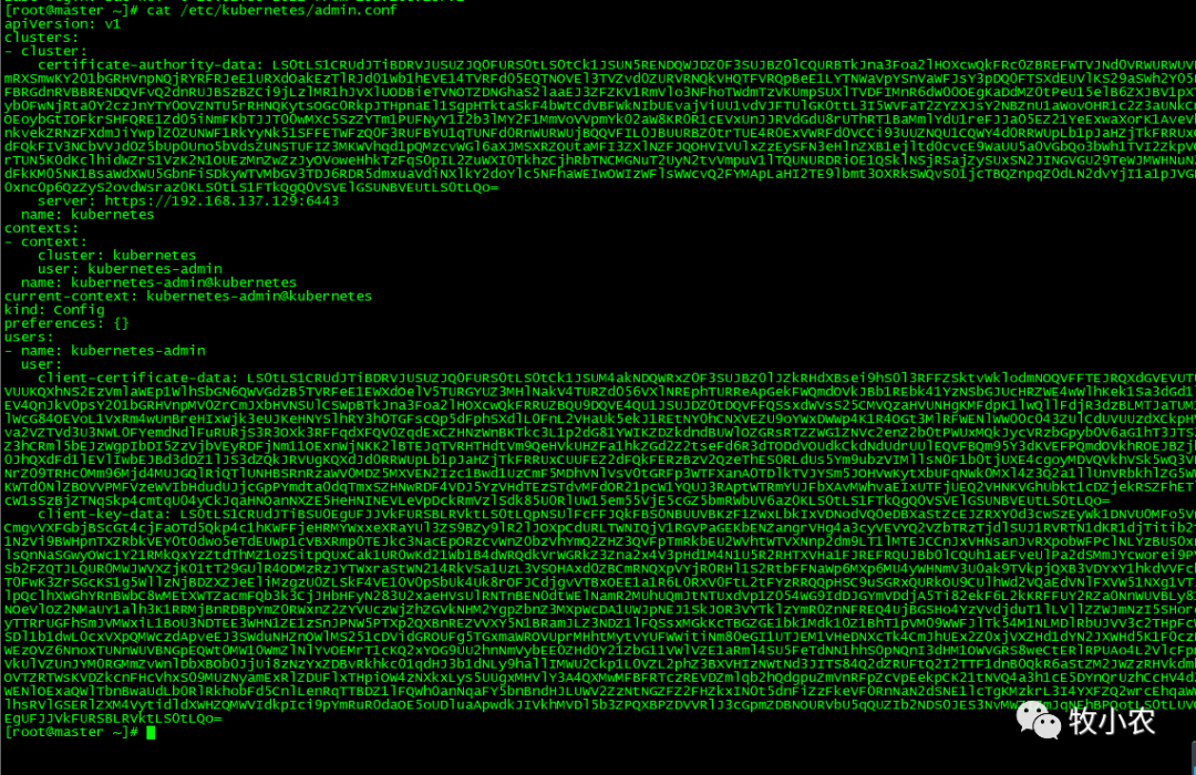 admin.conf 是 kubeadm 有关于当前集群的核心配置文件,包含了kubeadm集群信息,也包含节点的信息,大家可以看一下