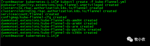 安装flannel网络组件:kubectl create-f kube-flannel.yml