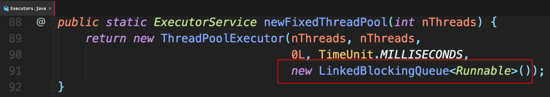 可以固定工作线程数量,但任务队列几乎无界。若任务较多且执行较慢,队列就会快速积压,内存不够,易导致OOM。
