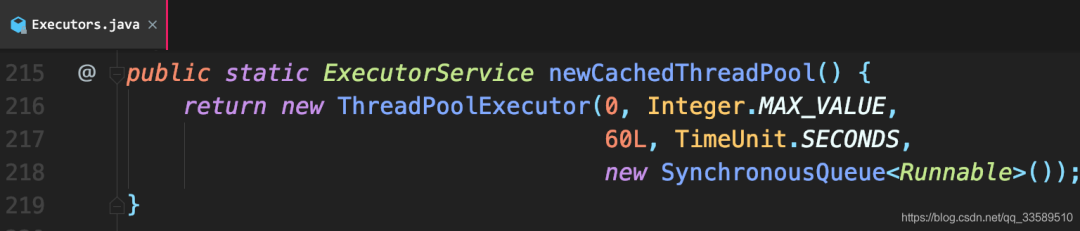 可见OOM是因为无法创建线程,newCachedThreadPool这种线程池的最大线程数是Integer.MAX_VALUE,也可认为无上限,而其工作队列SynchronousQueue是一个没有存储空间的阻塞队列。