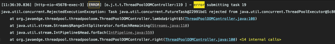 由于我们的任务需很长时间才能执行完成,大量任务进来后会创建大量线程。而线程是需要分配一定内存空间作为线程栈的,比如1MB,因此无限创建线程必OOM