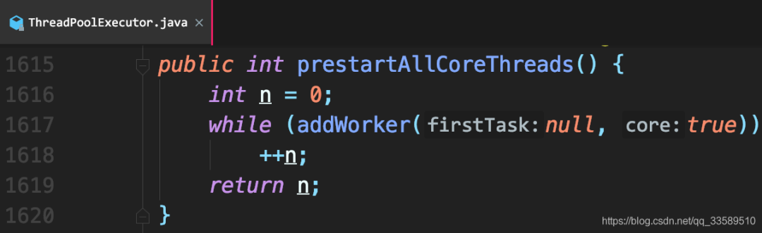 声明线程池后立即调用prestartAllCoreThreads,启动所有核心线程