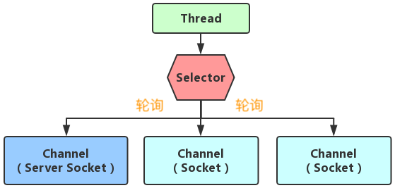 轮询代理。应用层不再通过阻塞模式或非阻塞模式直接询问操作系统“事件有没有发生”,而是由Selector代其询问。