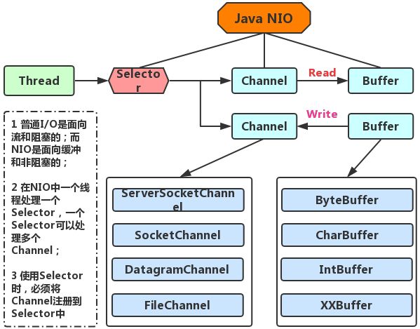 在Java中可基于java.nio.channels中的Channel、Buffer、Selector的三个核心相关类来实现TCP/IP+NIO方式的系统间通信。