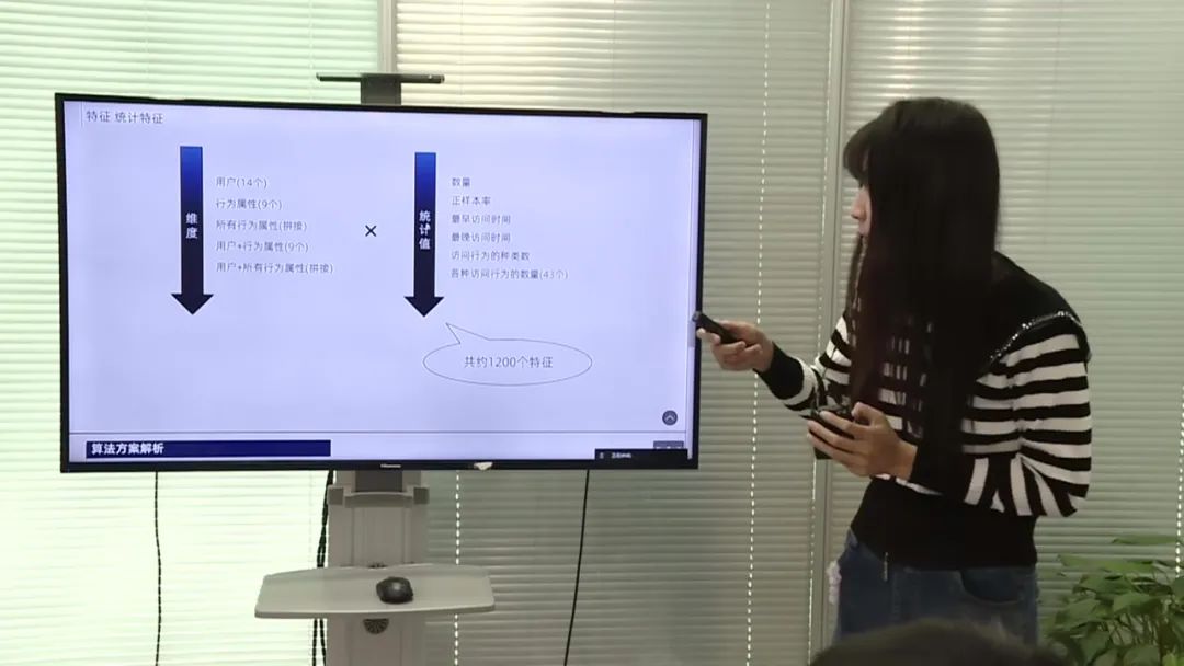 在特征工程方面,首先对原始特征进行简单处理,如将行为ID和用户属性进行类目化,将访问时间进行时间特征提取。然后考虑用户特征,将所有用户属性拼接成一个粗用户标志,并对其进行分段处理,得到用户标志。然后提取统计特征,包括用户标志和行为属性等,进行排列组合,得到约1200个特征。