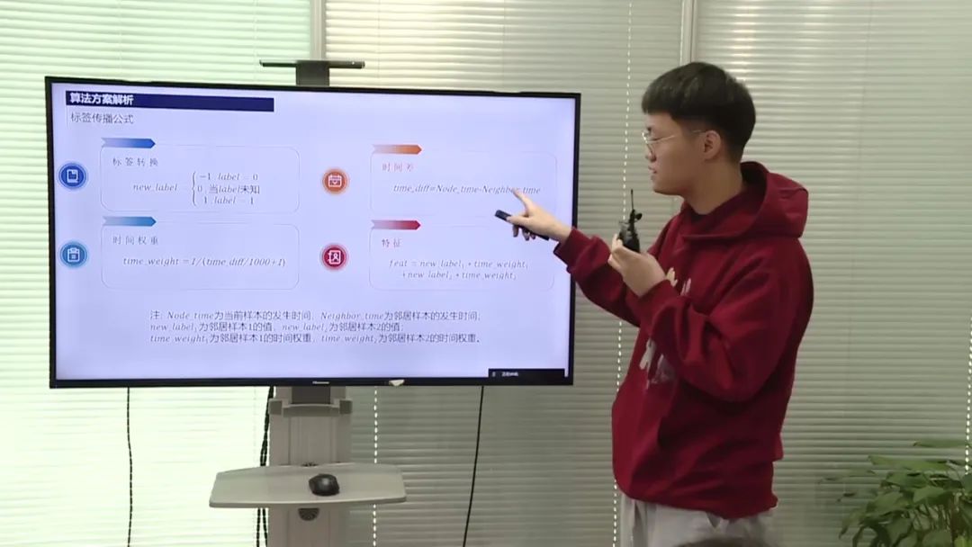 比赛方案主要采用了图神经网络(GNN)的思想,通过将样本的用户属性进行组合,构建了一个图结构。 每个样本被视为图中的一个节点,通过连接不同节点构建了边,并根据样本的发生时间计算了边的距离。利用特征传递和标签传递的方式,将邻居节点的特征和标签传递给目标节点进行学习,从而获得了图特征。