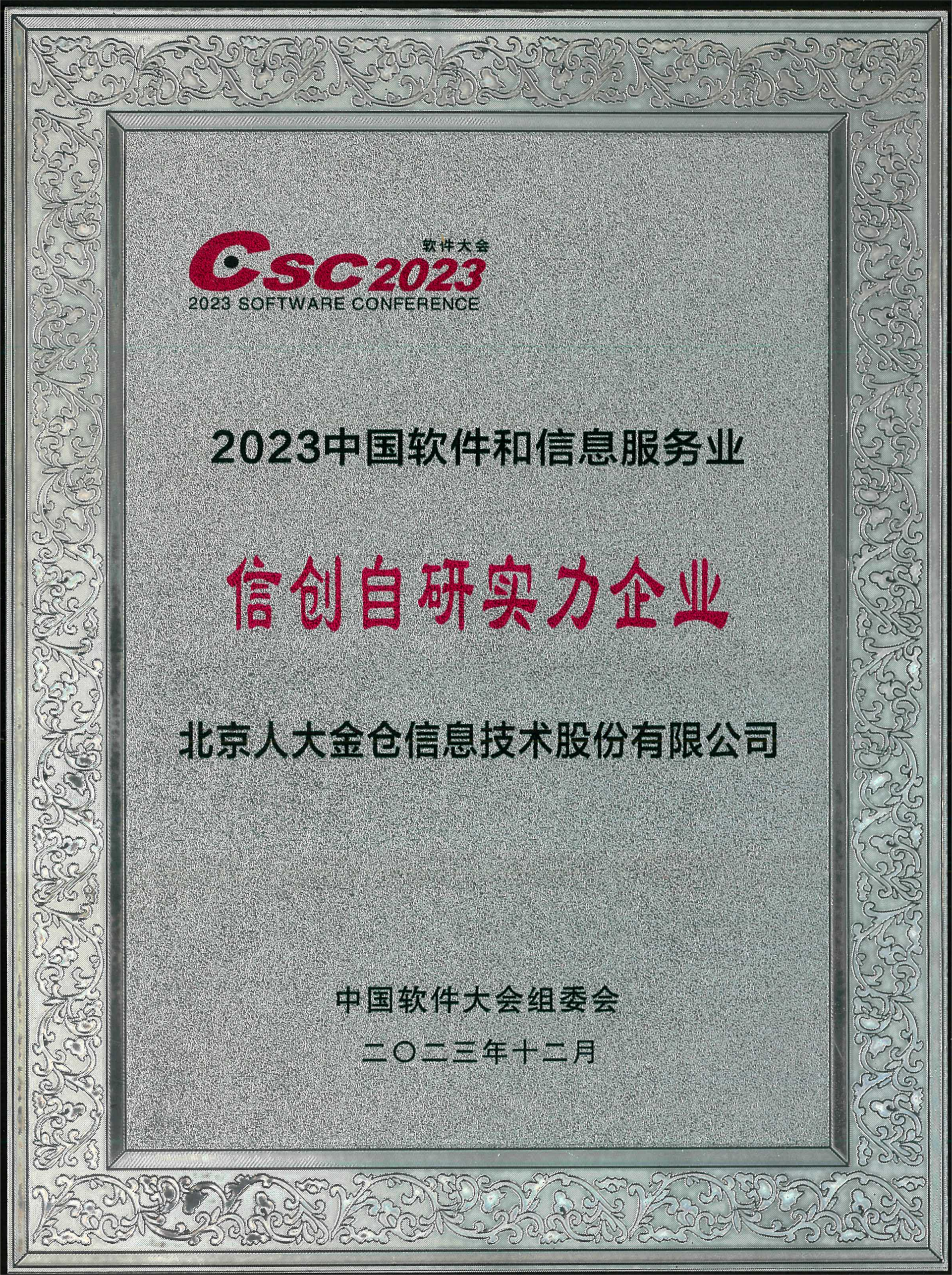 人大金仓荣膺2023中国软件和信息服务业信创自研实力企业