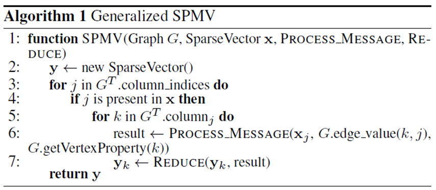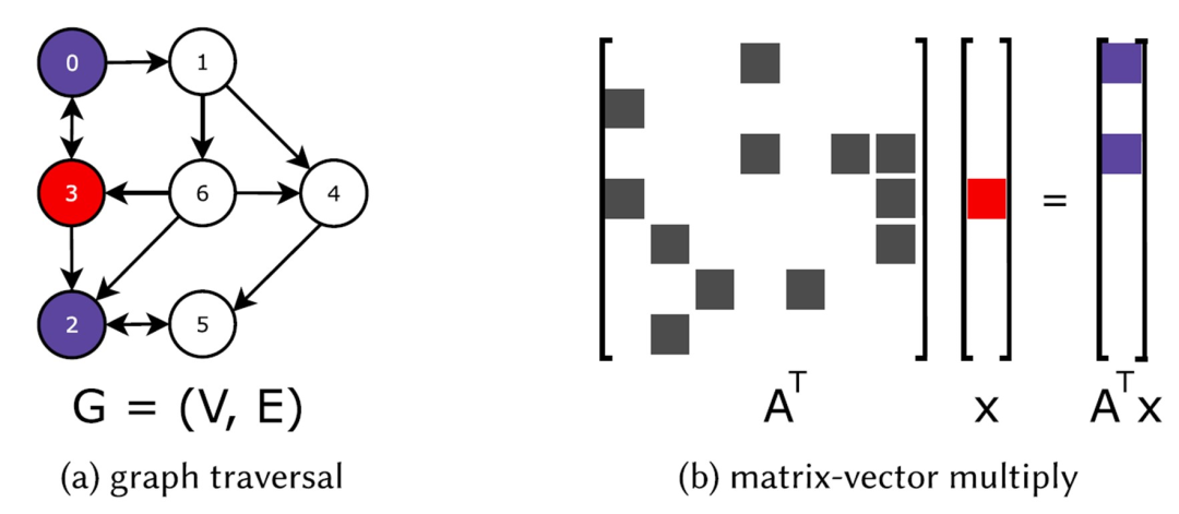 下面本文将介绍利用矩阵计算实现的图计算框架的两个代表工作:GraphMat与GraphBLAST