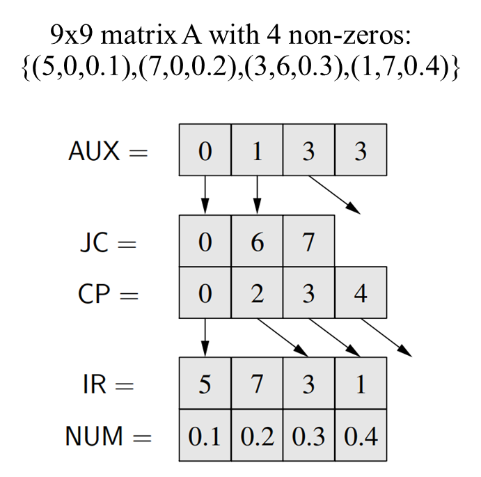 GraphMat关注的另一个重点问题是稀疏矩阵与稀疏向量的存储。对稀疏矩阵,它引入了双层CSC结构DCSC。DCSC把column index分成chunk,AUX记录每个Chunk里非零元素数量的前缀和,一个chunk一般是,这是为了节掉省全零的列的offset,并且行遍历比CSC快。而对稀疏向量,它采用了两种方式,一是将其中非零元素存储为<index,value>的tuple集合,并通过index顺序存储;二是使用一个bitvector记录非零元素的位置。存tuple好处是节省空间,bitvector好处是能够根据缓存行进行对齐,并且在存储上较为规整。