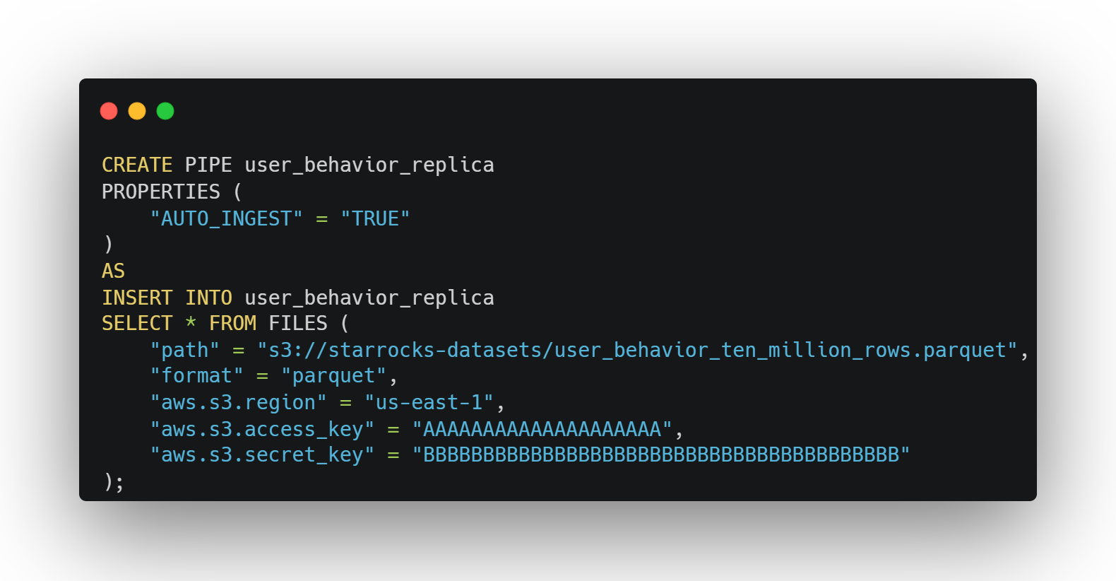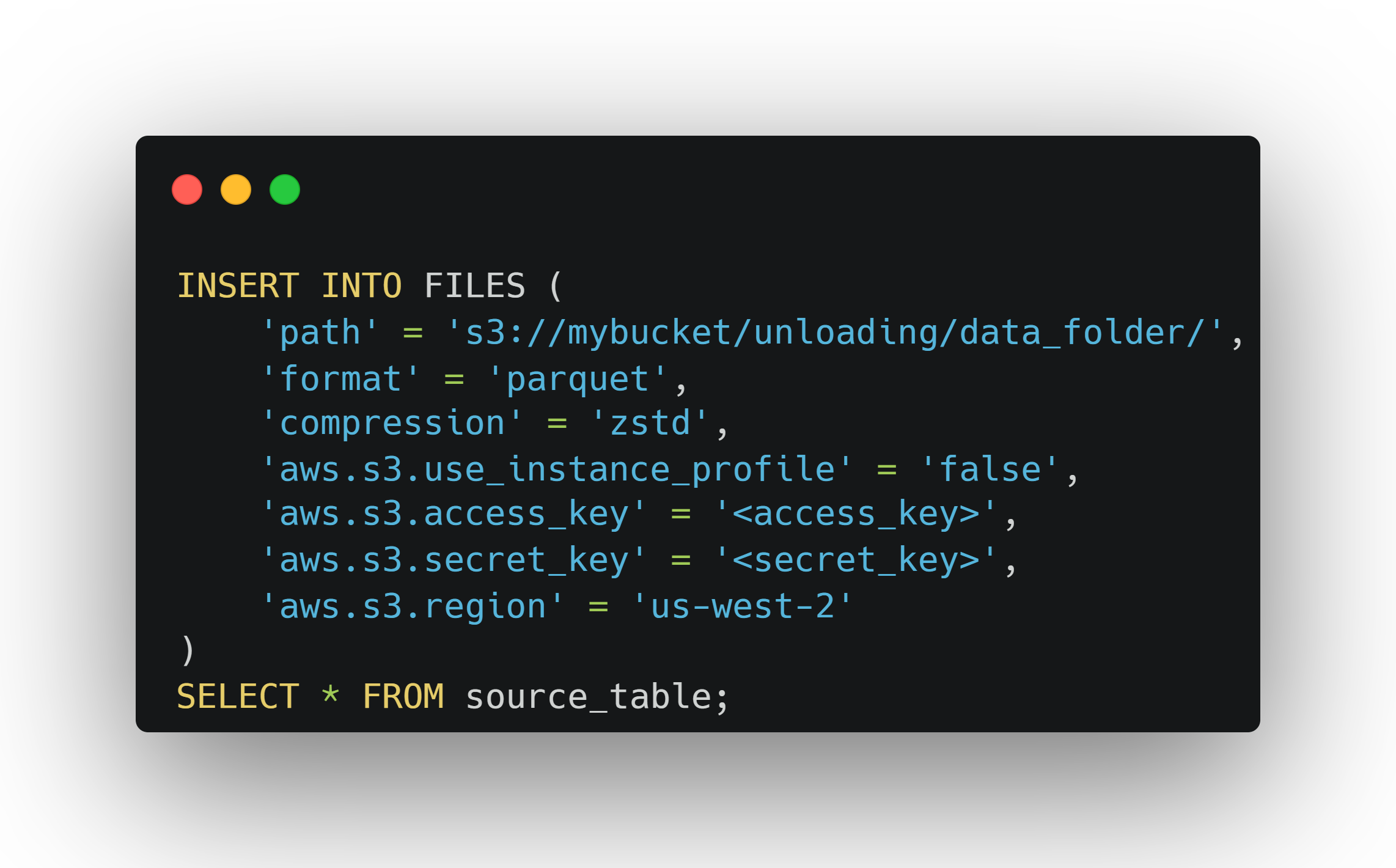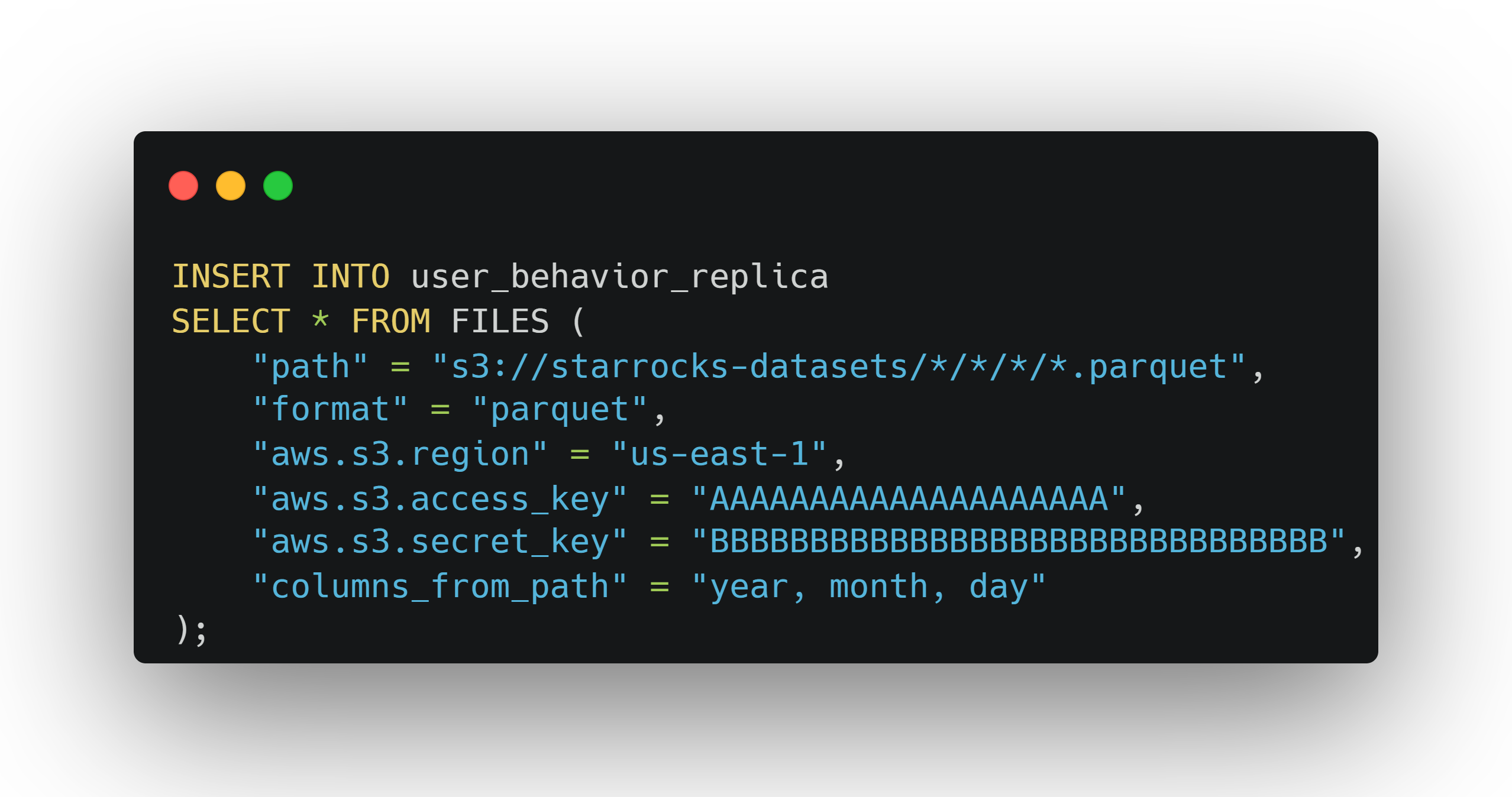 和统一导入形式 INSERT from FILES() 相对应,本版本提供了对应的统一导出形式:INSERT INTO FILES()[11],能够将数据导出为 AWS S3 或 HDFS 中的 Parquet 格式的文件,从而实现统一的导入导出语法,大大提升了这一操作的便利性。同时,数据导出后,可以直接使用 SELECT from FILES() 来轻松检验数据。