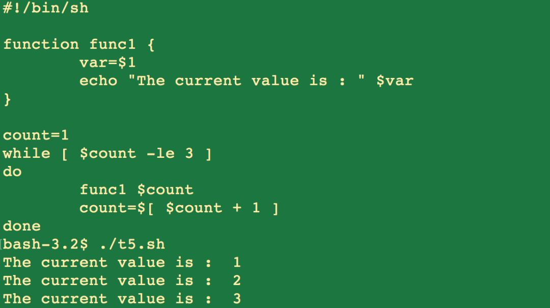 在上述格式中,func为shell函数名称,var1、var2为传递给函数的变量(变量数目无限制);另外在调用的时候,需要注意将函数名和参数列表放在同一行。