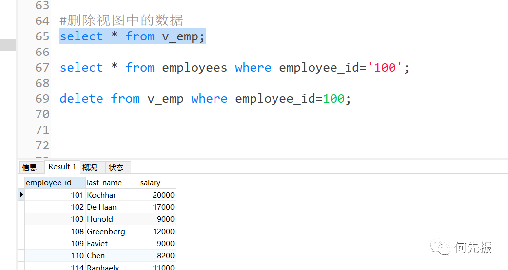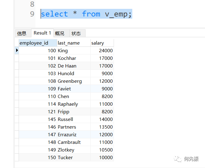 创建成功之后,就可以直接使用视图查数据。视图中的数据就是创建视图时select查到的数据。