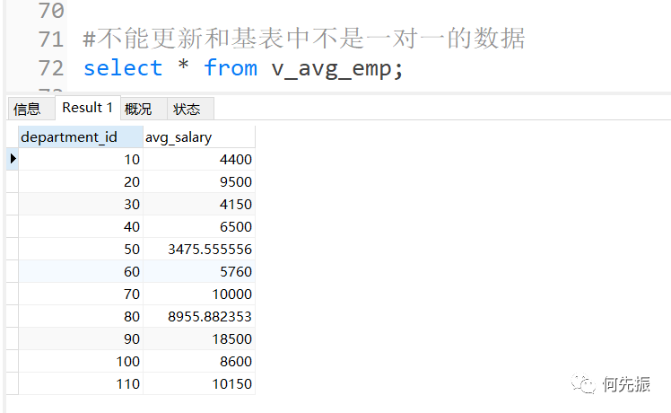 通过员工表计算出来的部门平均工资的视图,不是和基表一对一的关系。