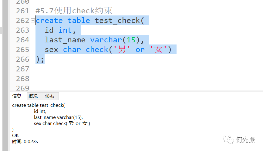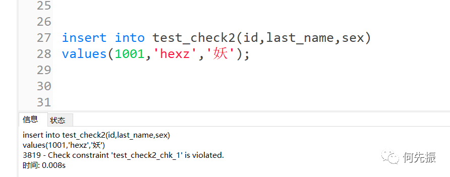 MySQL5.7版本可以使用check约束,但是check约束对数据验证没有任何作用,不会有报错信息和警告信息。