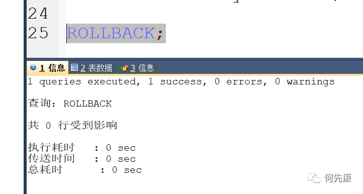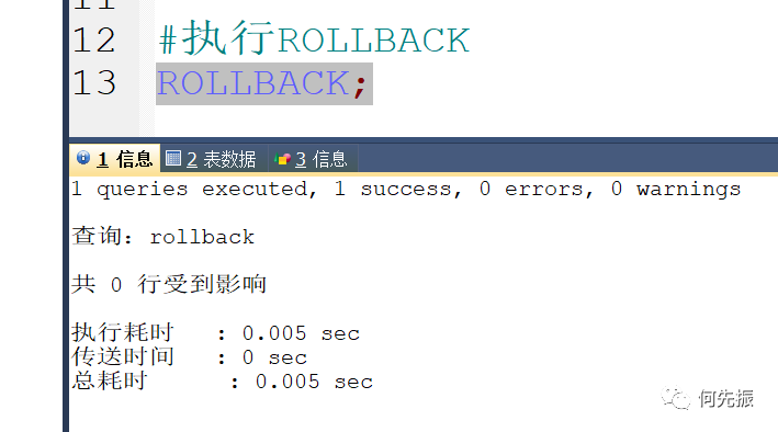 ROLLBACK:回滚数据。一旦执行ROLLBACK,则可以实现数据的回滚。回滚到最近的一次COMMIT之后。