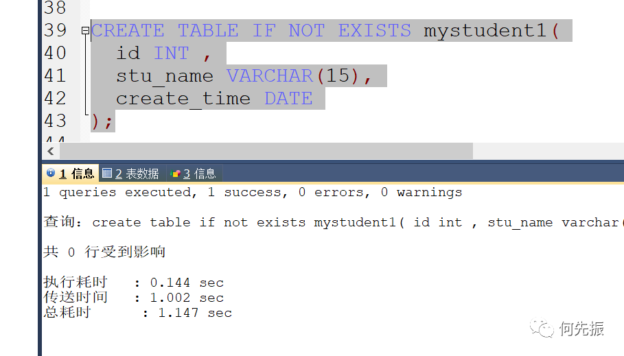还需要用户创建表的权限,一般用root账号是超级管理员可以直接创建。如果是其他账号可能会没有权限。