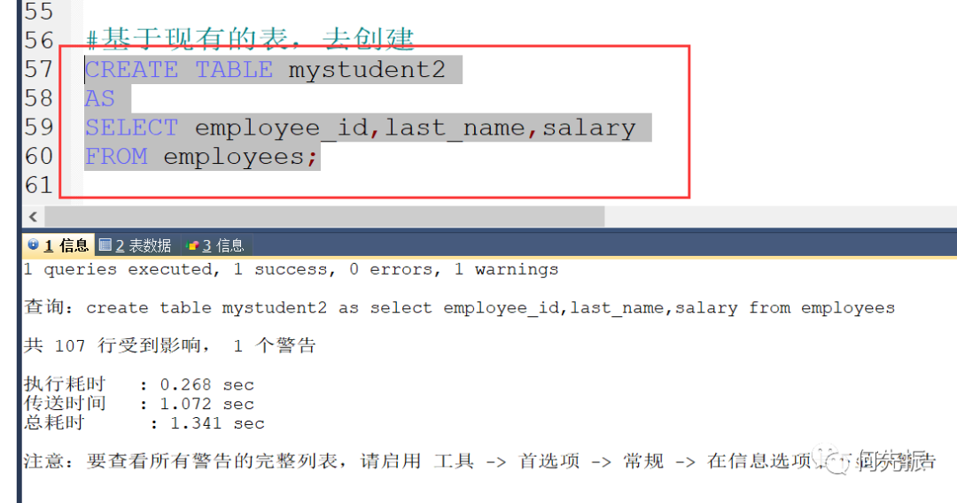 字段信息,如果查询语句中有别名,会拿别名作为新创建表的字段名称