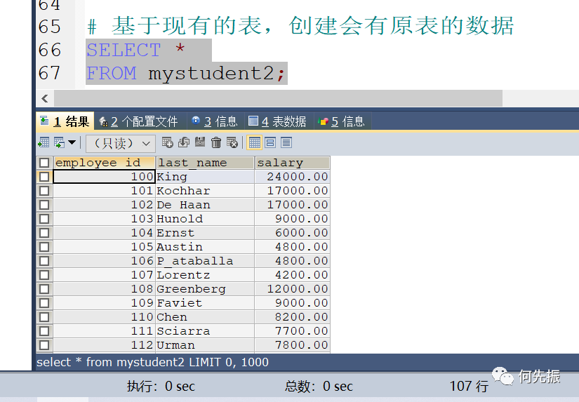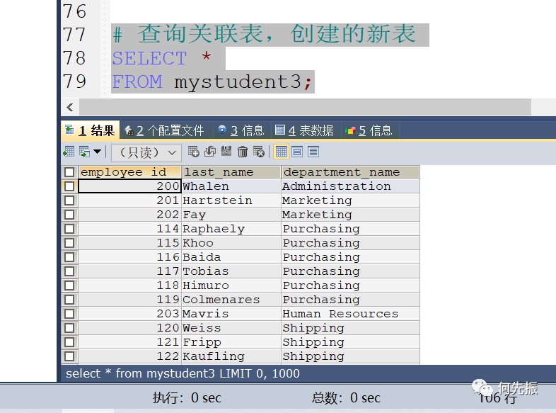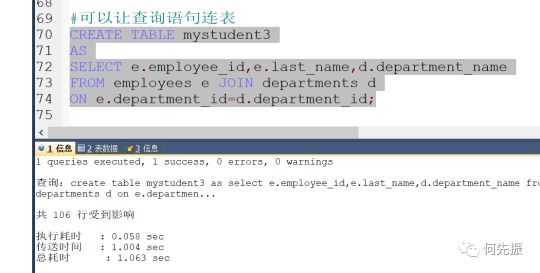 查询关联表,创建的新表数据、此时的查询语句可以结构比较丰富,使用前面章节讲过的各种SELECT