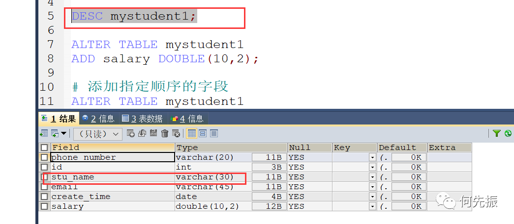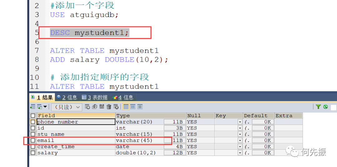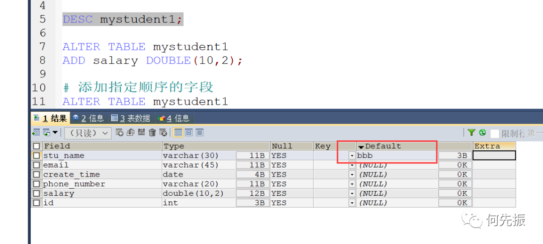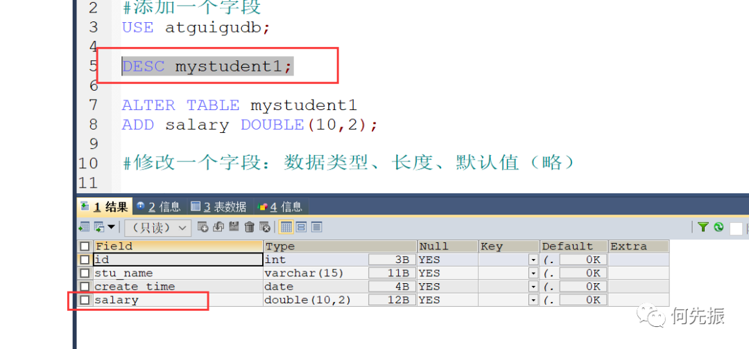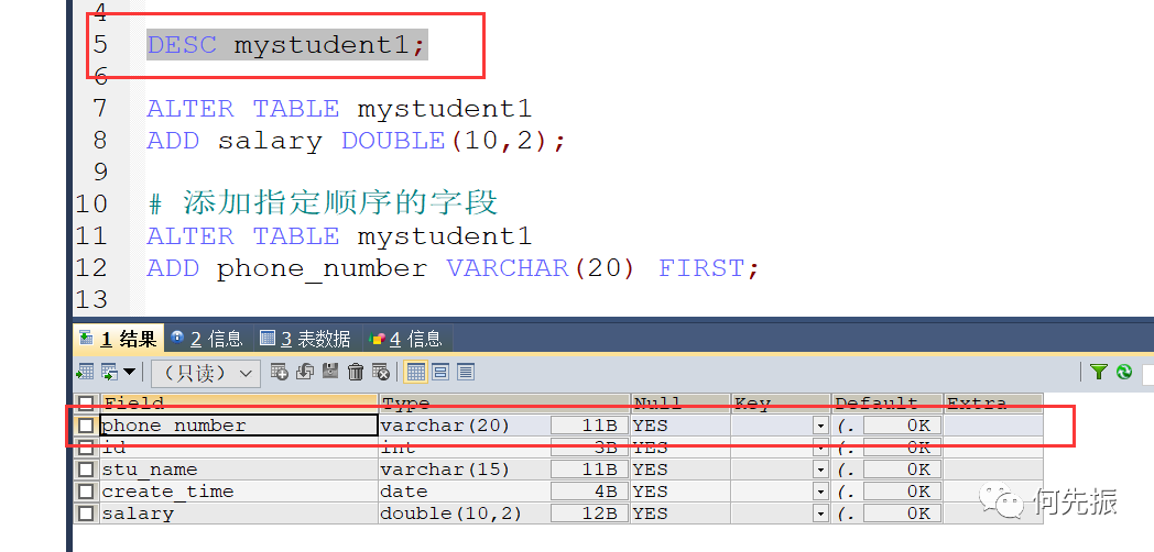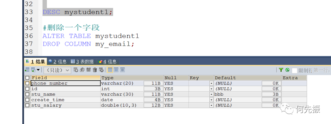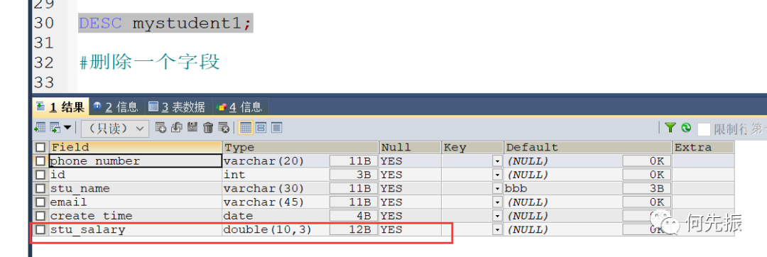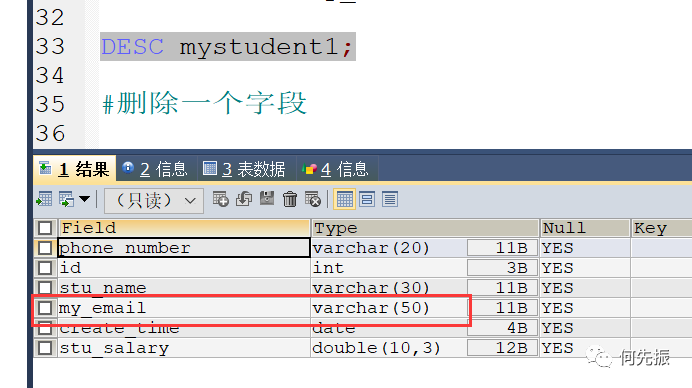 再查看,已经创建成功,默认添加到表中的最后一个字段