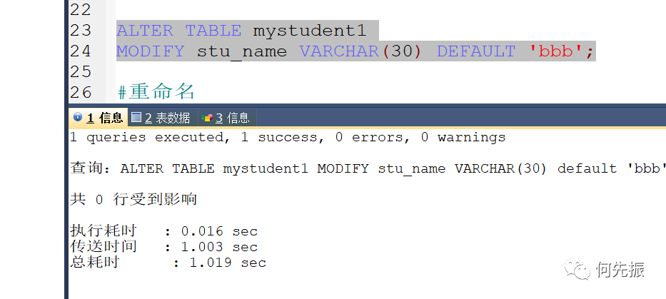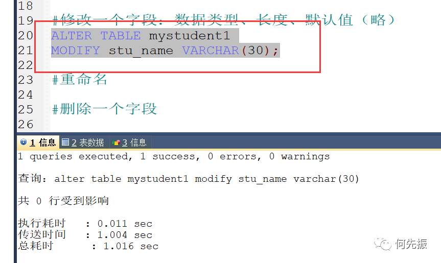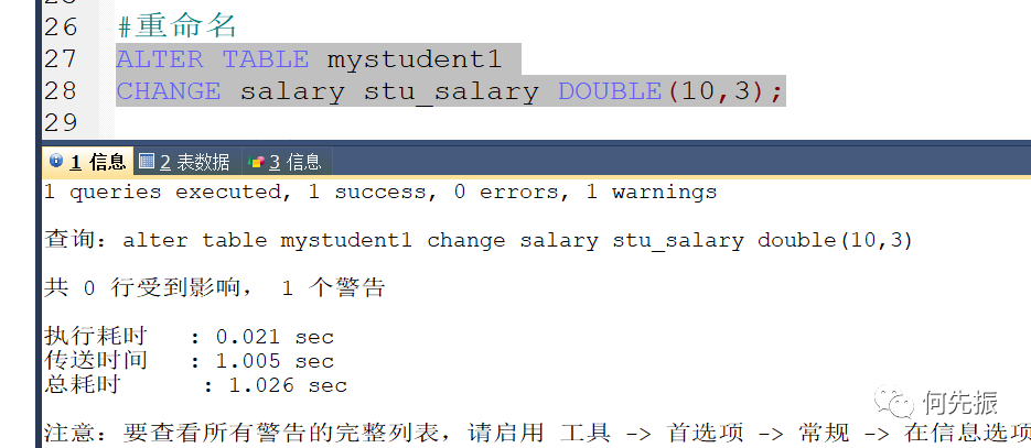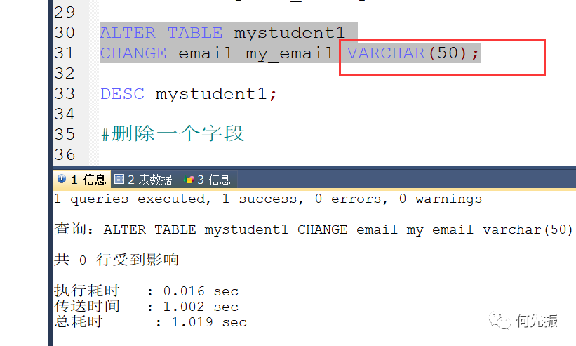 alter table 表名change 字段名 新字段名 数据类型(长度);