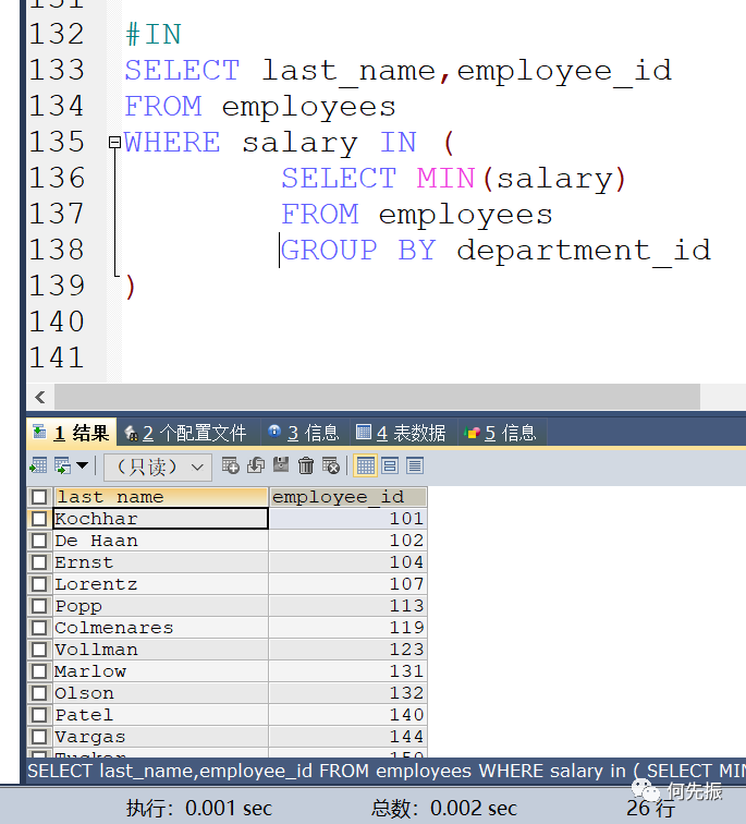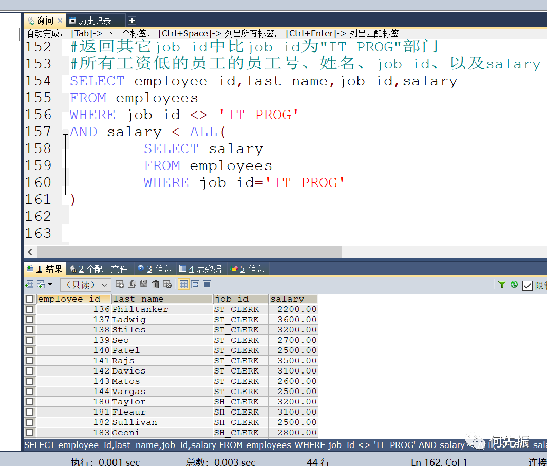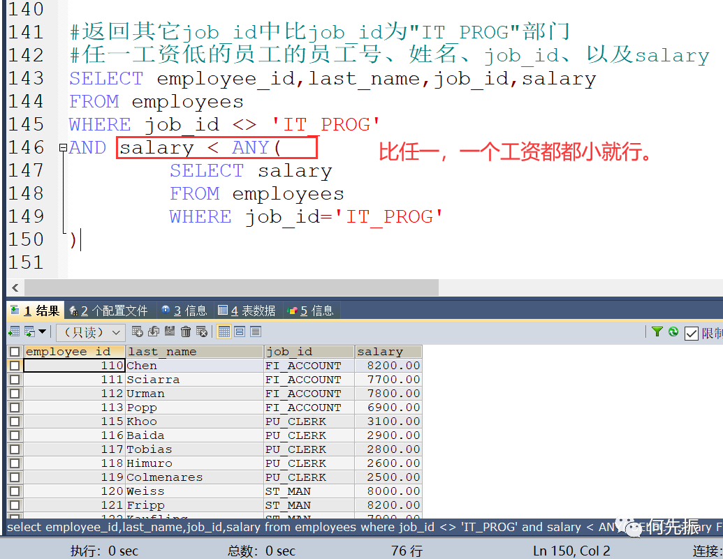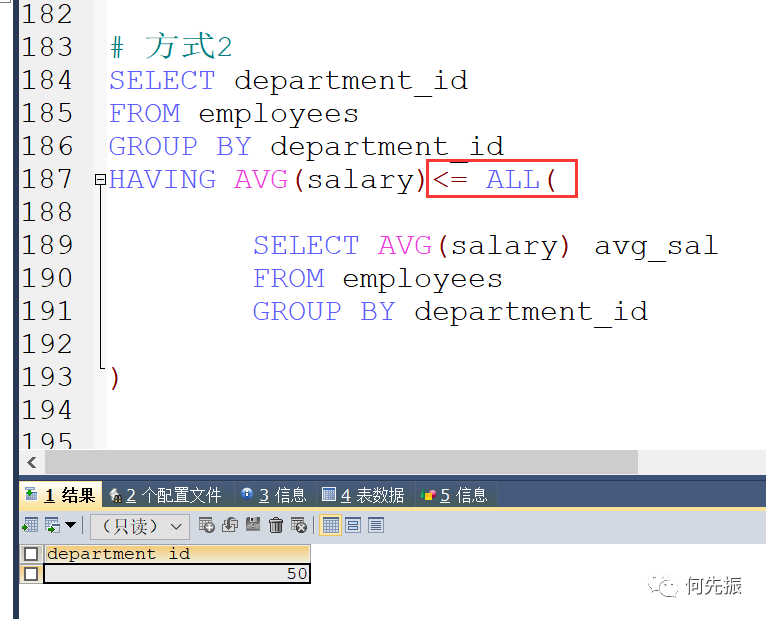 方式二:使用ALL,查询小于等于这些所有的,就是找最小的。