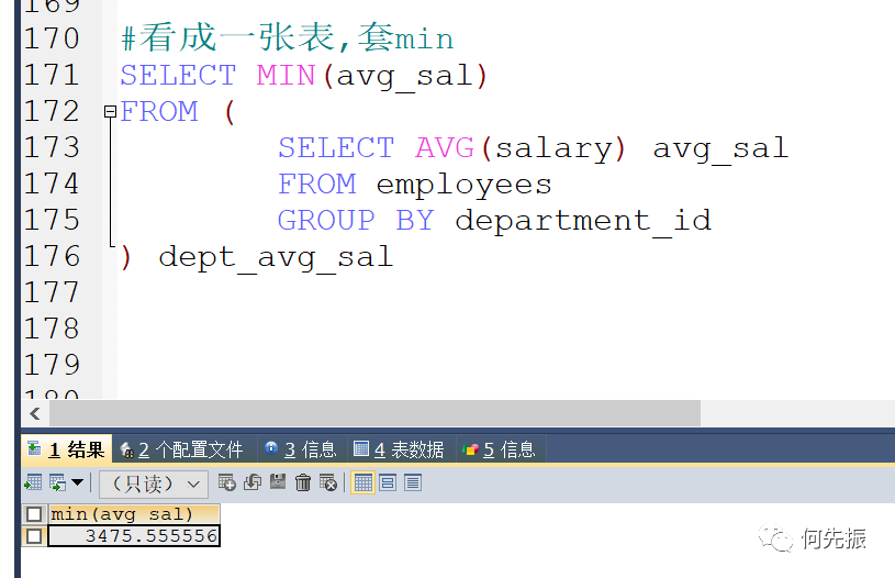 可以将查询结果单独看成一张表,然后套聚合函数MIN