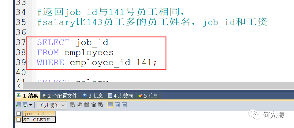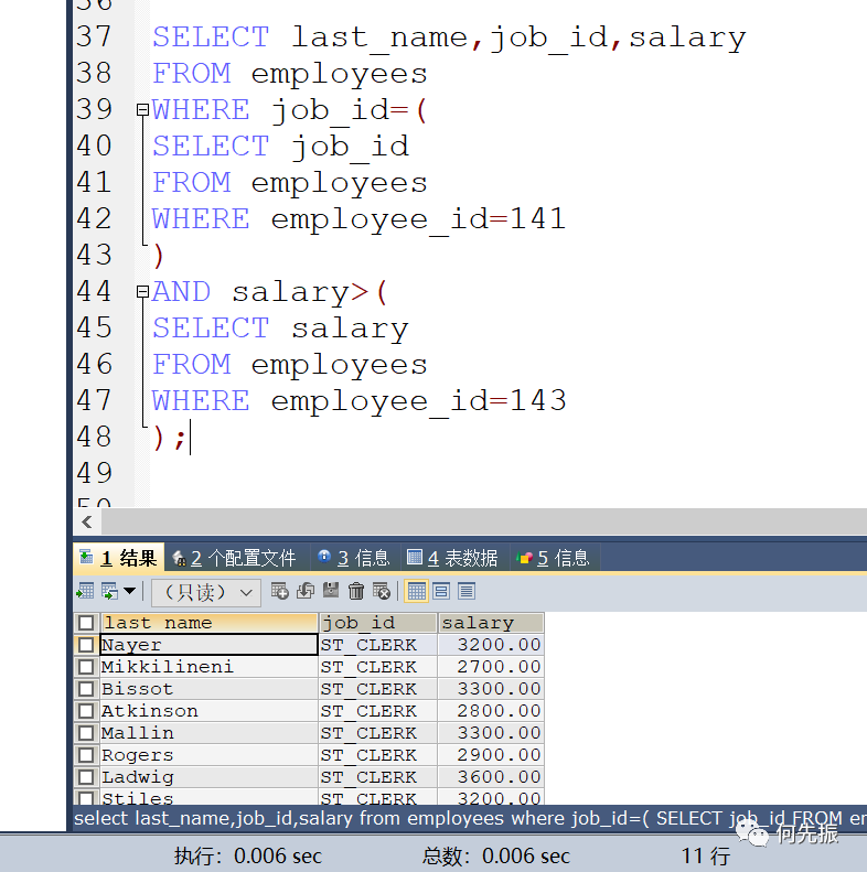 然后在查询同时等于141员工的job_id和工资大于143员工的员工