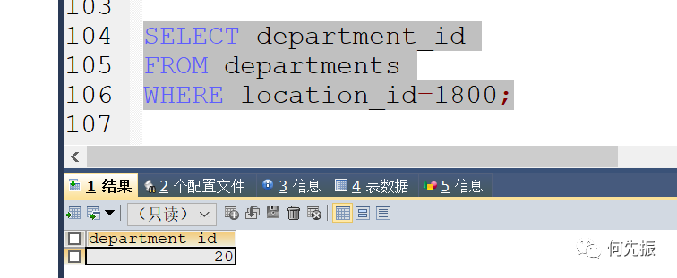 例如:=号就是单行操作符号,对应着一条单行子查询。