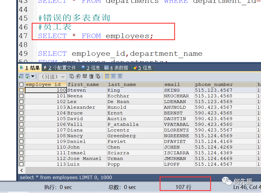 员工表有107个员工