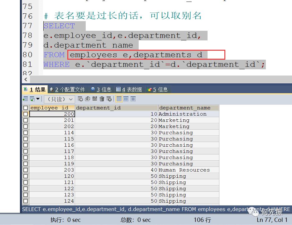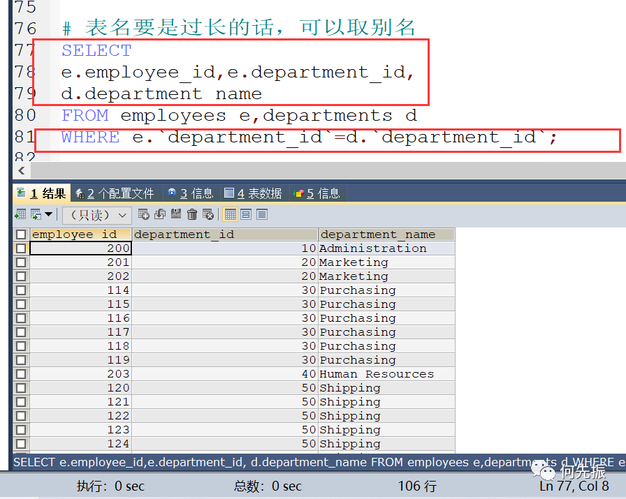 可以给表起别名,在SELECT和WHERE中使用表的别名。