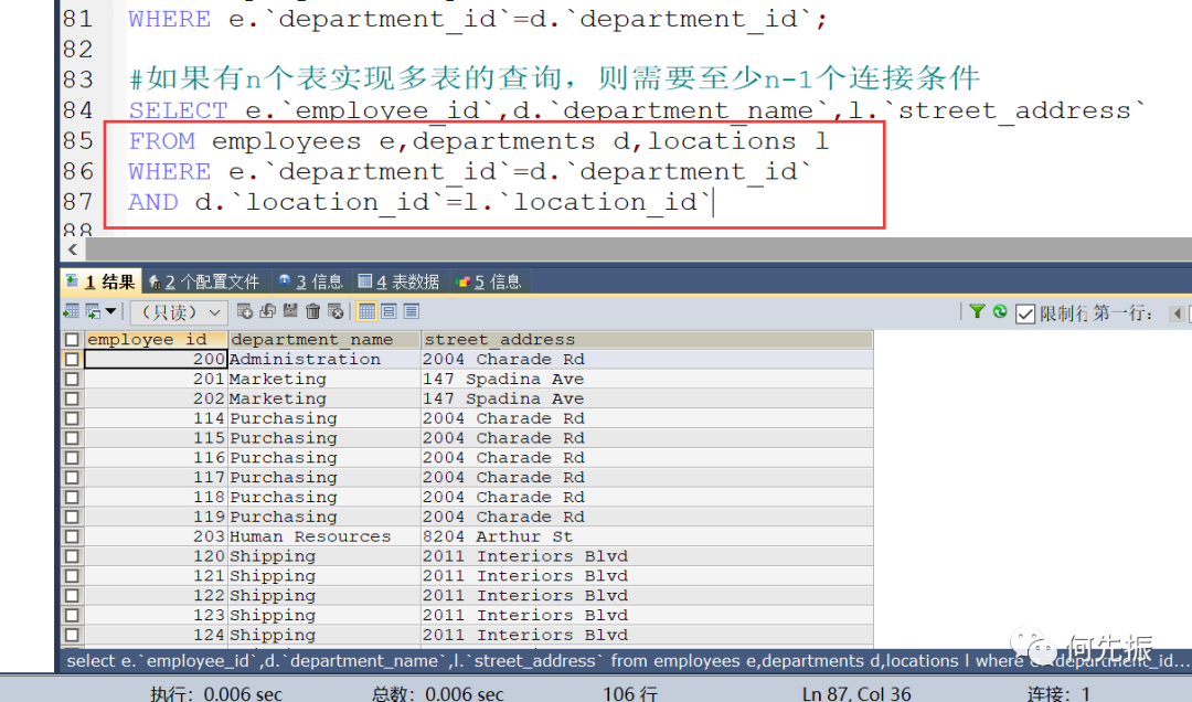 建议:从sql优化的角度,建议多表查询时,每个字段都指明其所在的表