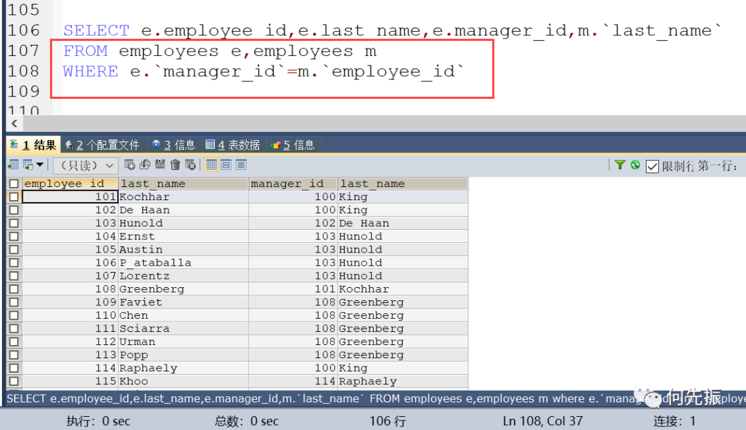 举例:每一个员工,都有一个上级,他的上级也是一个员工id,也就是manager_id