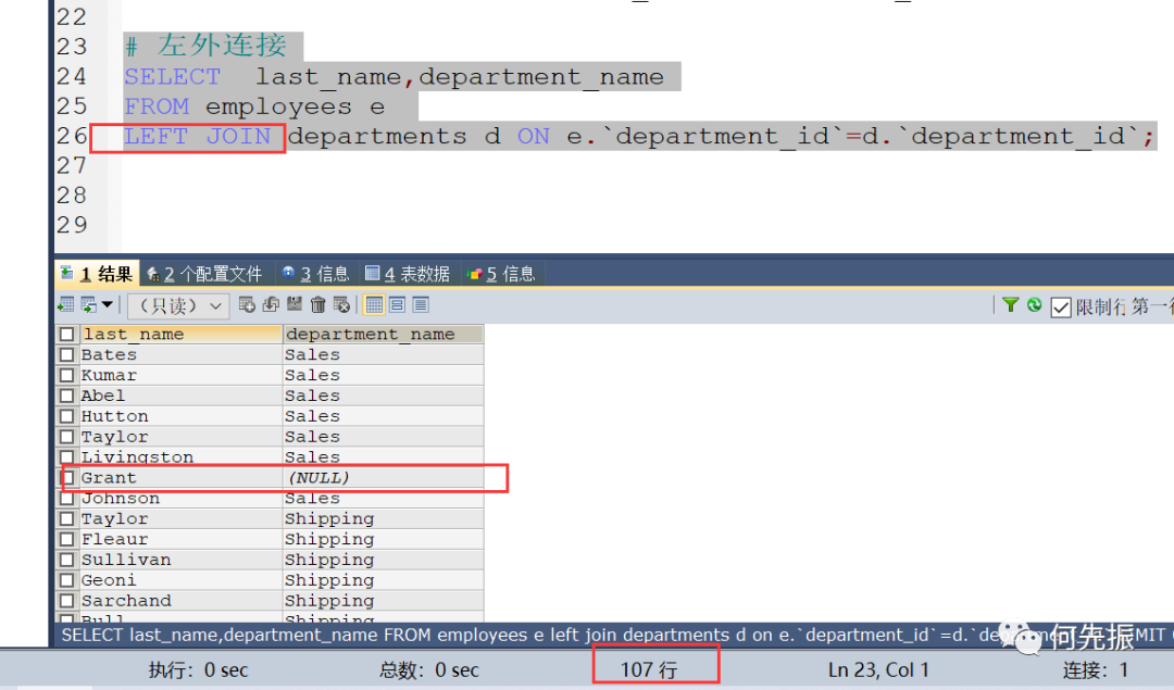 左外连接:使用LEFT JOIN