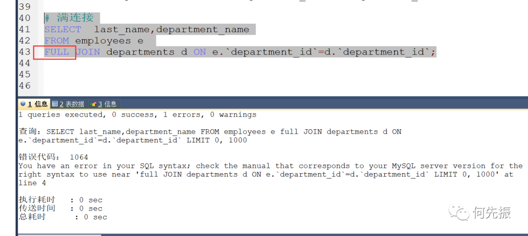SQL99语法使用 JOIN ..... ON 的方式实现多表查询。这种方式也能解决外连接的问题。MySQL是支持此种方式的。