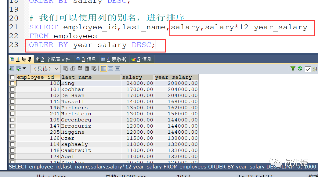 我们可以使用列的别名,进行排序