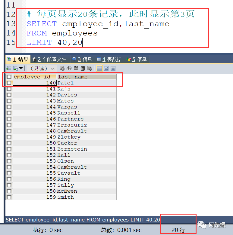 每页显示20条记录,此时显示第1页,limit 第一位是偏移量也就是从第几个开始,默认第一个是0,逗号 第二位是总数,要显示20条,所以写20.