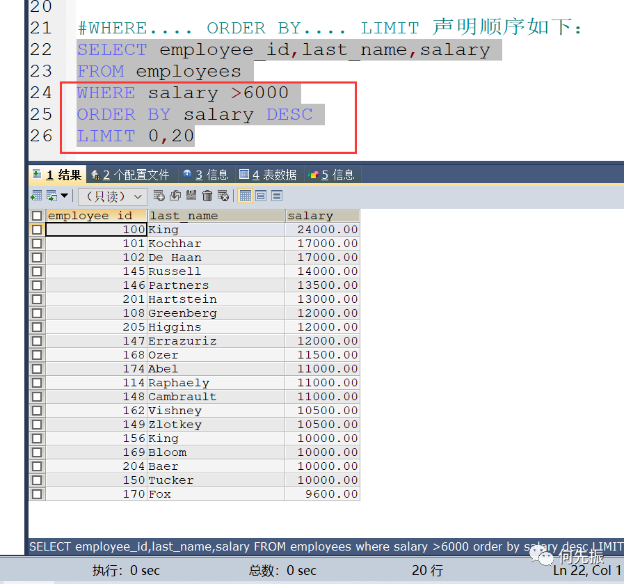 先写WHERE 后写ORDER BY 最后写LIMIT
