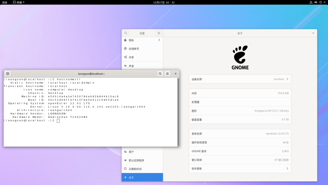 本次龙架构代码与社区其他架构同源,核心软件 Linux Kernel、GCC、OpenJDK、LLVM 等均在 openEuler 22.03 LTS 分支完成移植和构建。